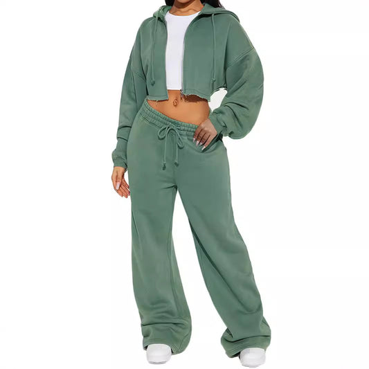 Women's Sports Suits Zipper Jacket And Wide Leg Pants Two-piece Set