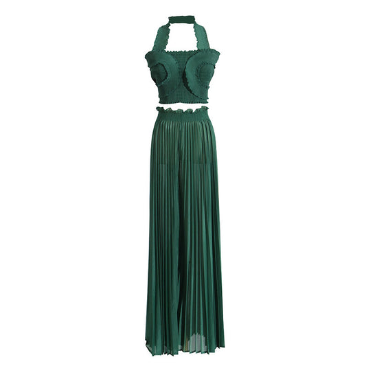 Design Tube Top High Waist Pleated Wide-leg Trousers