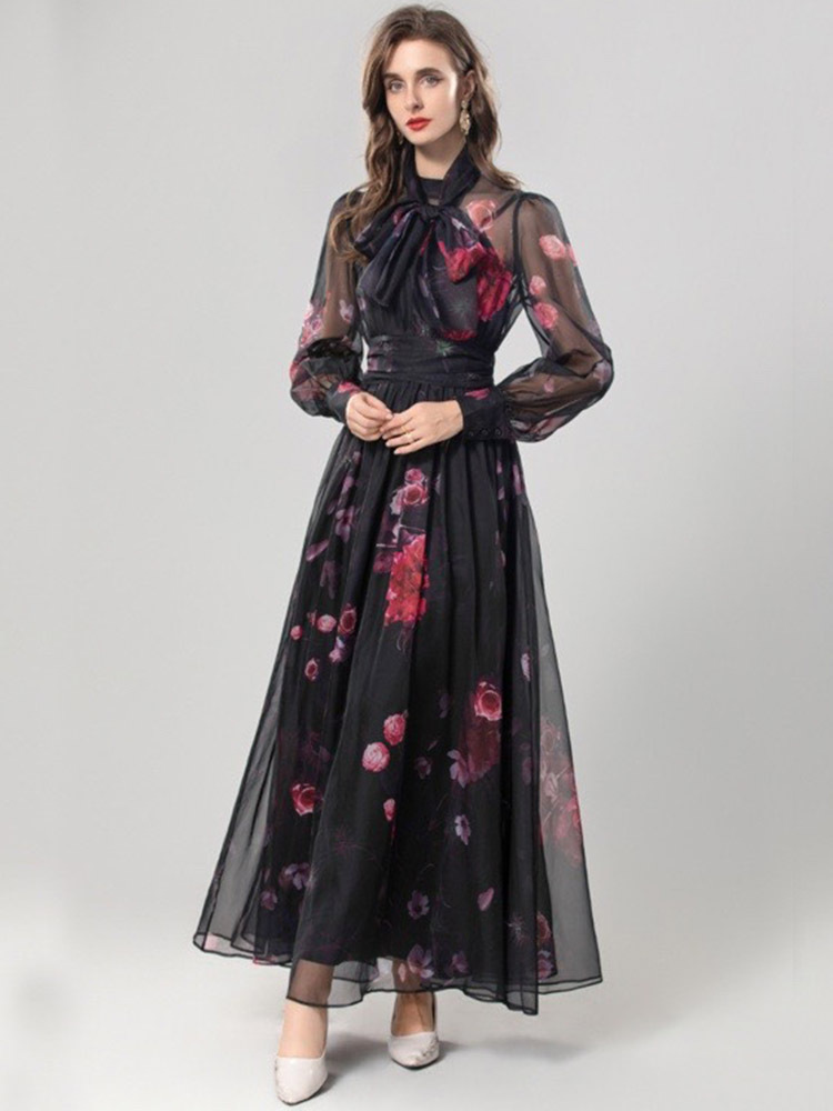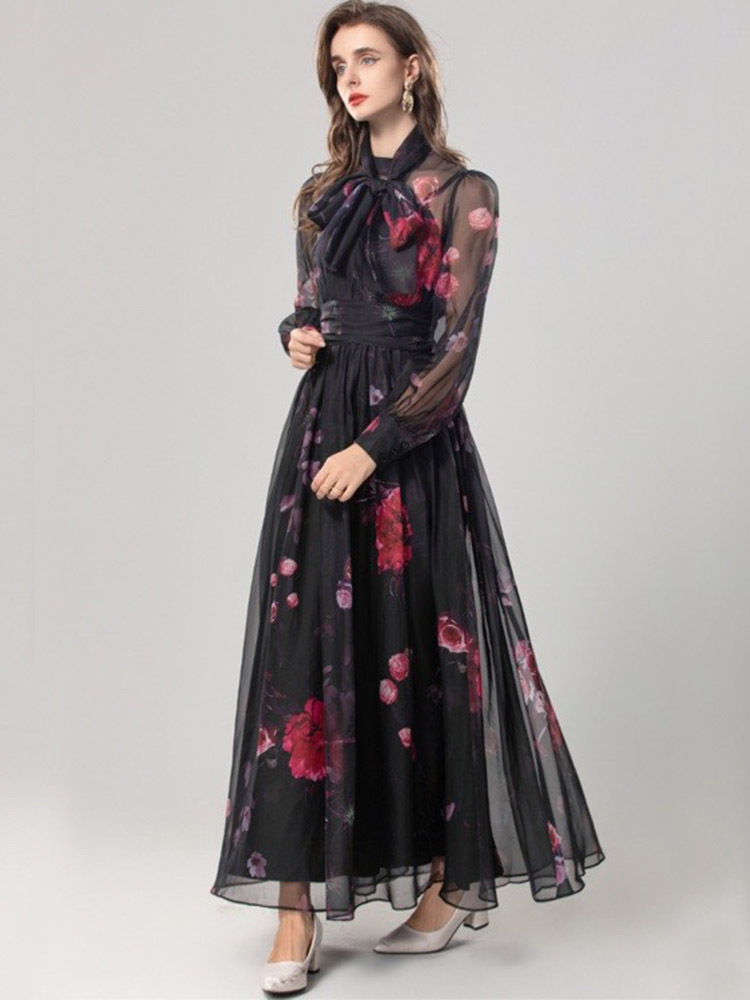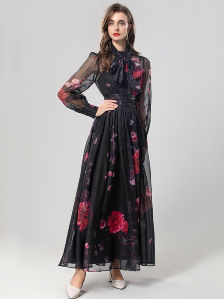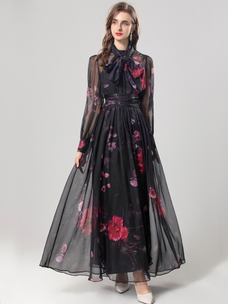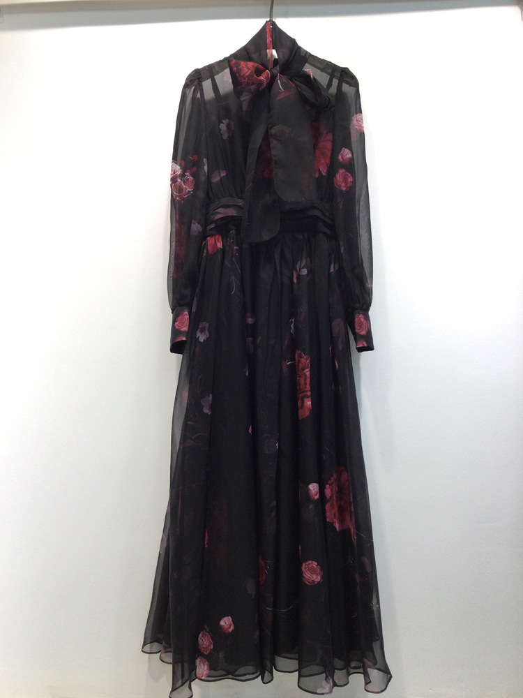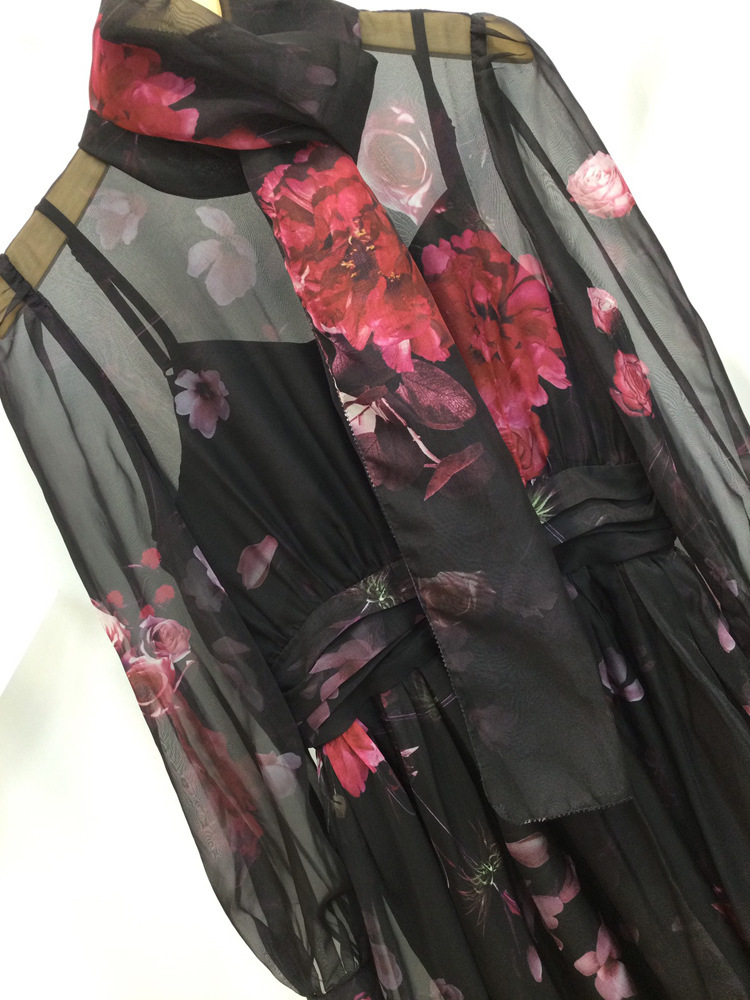 Elegant Silk Scarf Long Slimming Dress