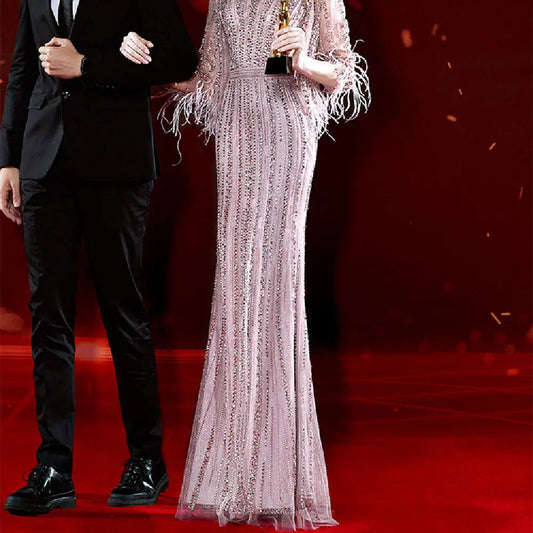 Rhinestone Dress Ball Party Long Dress Host Party Bridal Dress