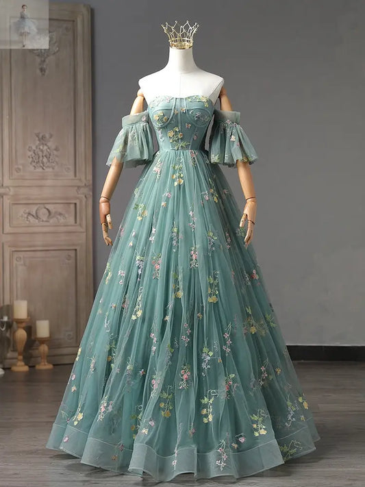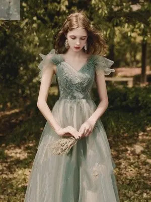 Green Bridesmaid Dress – Crystal Beaded U-Neck Wedding & Dinner Gown