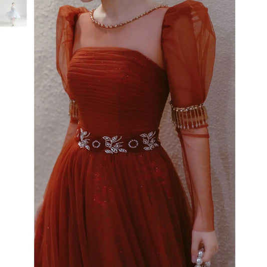 Red Long-Sleeve Engagement Party Dress – Sweet Style Women's Gown
