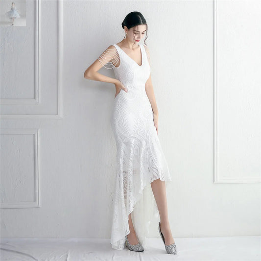 Sequin Fishtail Evening Dress – Elegant Backless Gown for Women