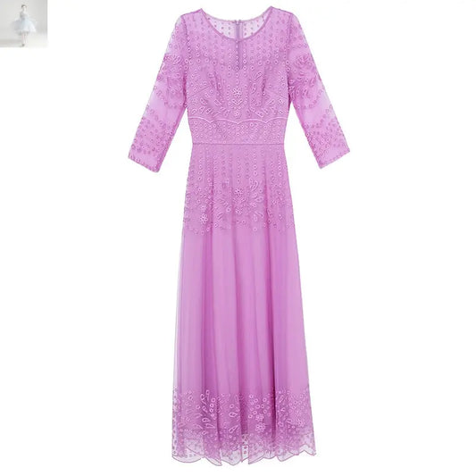 Embroidered Beaded Party Dress – Round Neck Pullover Occasion Dress