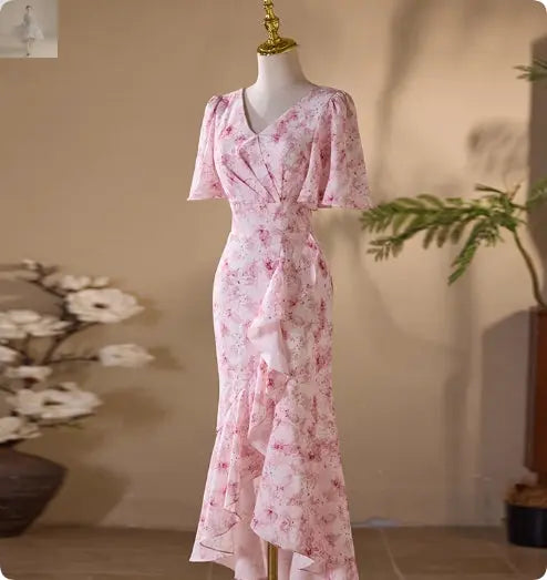 Princess Evening Gown – Pink Purple Mid-Waist Korean Style Dress