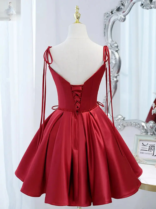 Wine Red Satin Lady's Slimming Annual Meeting Light Luxury Dress