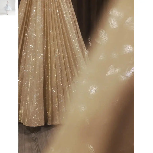 Celebrity Fluffy Strap Evening Dress – Elegant Mid-Waist Party Gown